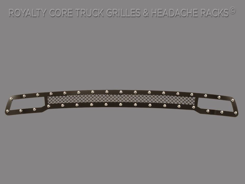 Royalty Core developed their RC2 Twin Mesh grille with a unique blend of two styles of mesh working together like never see before. This sporty grille frame curves to compliment custom logos very well. Each corner of the design has smaller accent mesh while exposing Royalty Core's race proven diamond mesh for accelerated airflow and appearance. Royalty Core's proprietary corrosion resistant stainless technology creates the most durable grille on the planet. Absolutely every piece is 100% T304 stainless steel. It's engineered to exploit the cleanest installation possible for your specific truck model. This Royalty Core grille is customized to best match your truck with military grade strength you can count on such as a 12 gauge stainless steel construction, optimal mounting brackets, CNC precision machined brackets, frame, and logos, hand fabricated, all gloss surfaces are buffed to a deep smooth mirrored finish,triple chrome plated T304 stainless studs around frame with star flange design, stainless super woven mesh, and absolutely no plastic. Royalty Core offers the industry's largest customized line of grilles and logos available.