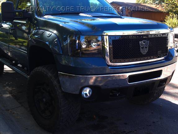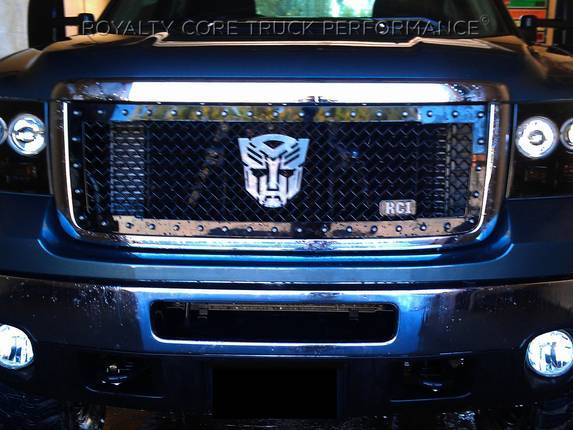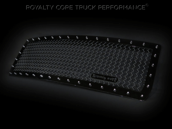Royalty Core's classic RC1 grille design has clean lines with a dynamic 2-tone appearance for truck enthusiasts looking to make a bold statement. This RC1 design screams 1 custom grille and it shows with a distinct footprint. This grille exposes Royalty Core's race proven diamond mesh for accelerated airflow and appearance. Royalty Core's proprietary corrosion resistant stainless technology creates the most durable grille on the planet. Absolutely every piece is 100% T304 stainless steel. It's engineered to exploit the cleanest installation possible for your specific truck model. This Royalty Core grille is customized to best match your truck with military grade strength you can count on such as a 12 gauge stainless steel construction, optimal mounting brackets, CNC precision machined brackets, frame, and logos, hand fabricated, all gloss surfaces are buffed to a deep smooth mirrored finish, half inch detailed star point stainless stud design with secondary option for dimension, 5/16 & 3/8 threads, stainless super woven mesh, and absolutely no plastic. Royalty Core offers the industry's largest customized line of grilles and logos available.