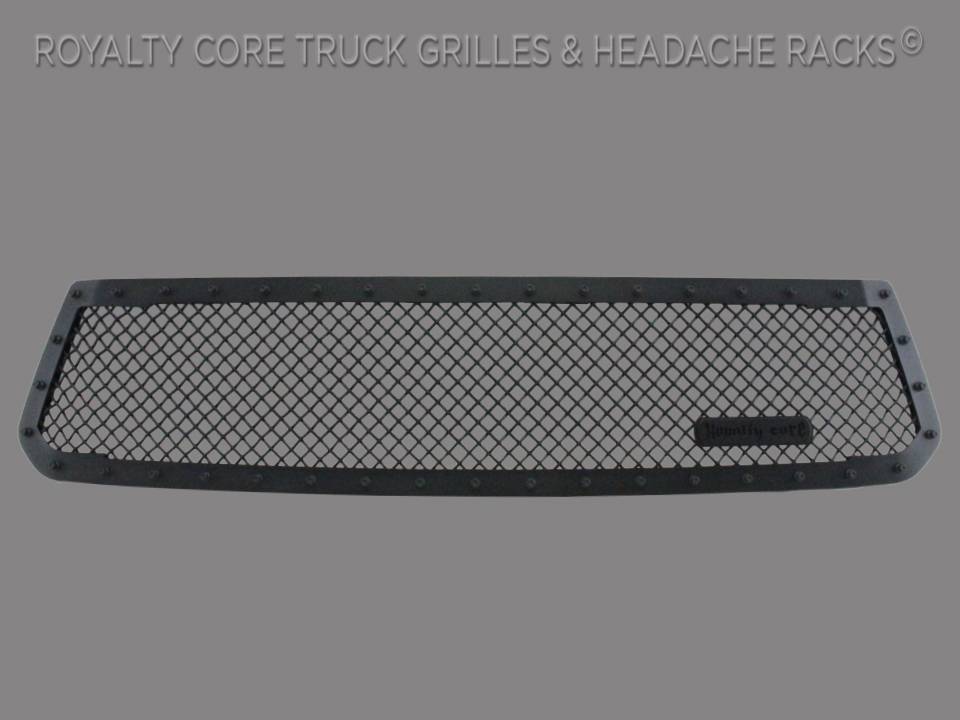 Royalty Core's classic RC1 grille design has clean lines with a dynamic 2-tone appearance for truck enthusiasts looking to make a bold statement. This RC1 design screams 1 custom grille and it shows with a distinct footprint. This grille exposes Royalty Core's race proven diamond mesh for accelerated airflow and appearance. Royalty Core's proprietary corrosion resistant stainless technology creates the most durable grille on the planet. Absolutely every piece is 100% T304 stainless steel. It's engineered to exploit the cleanest installation possible for your specific truck model. This Royalty Core grille is customized to best match your truck with military grade strength you can count on such as a 12 gauge stainless steel construction, optimal mounting brackets, CNC precision machined brackets, frame, and logos, hand fabricated, all gloss surfaces are buffed to a deep smooth mirrored finish, half inch detailed star point stainless stud design with secondary option for dimension, 5/16 & 3/8 threads, stainless super woven mesh, and absolutely no plastic. Royalty Core offers the industry's largest customized line of grilles and logos available.