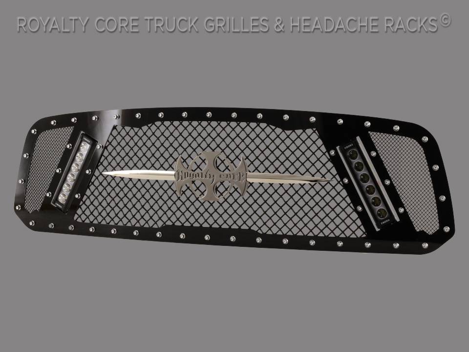 the market against the harshest conditions. Simple direct bolt on Royalty Core grilles are engineered to exploit the cleanest installation possible for your specific truck model.Royalty Core's proprietary corrosion resistant stainless technology creates the most durable grille on the planet. Absolutely every piece is 100% T304 stainless steel. It's engineered to exploit the cleanest installation possible for your specific truck model. This Royalty Core grille is customized to best match your truck with military grade strength you can count on such as a 12 gauge stainless steel construction, optimal mounting brackets, CNC precision machined brackets, frame, and logos, hand fabricated, all gloss surfaces are buffed to a deep smooth mirrored finish,triple chrome plated T304 stainless studs around frame with star flange design, stainless super woven mesh, and absolutely no plastic. Royalty Core offers the industry's largest customized line of grilles and logos available.