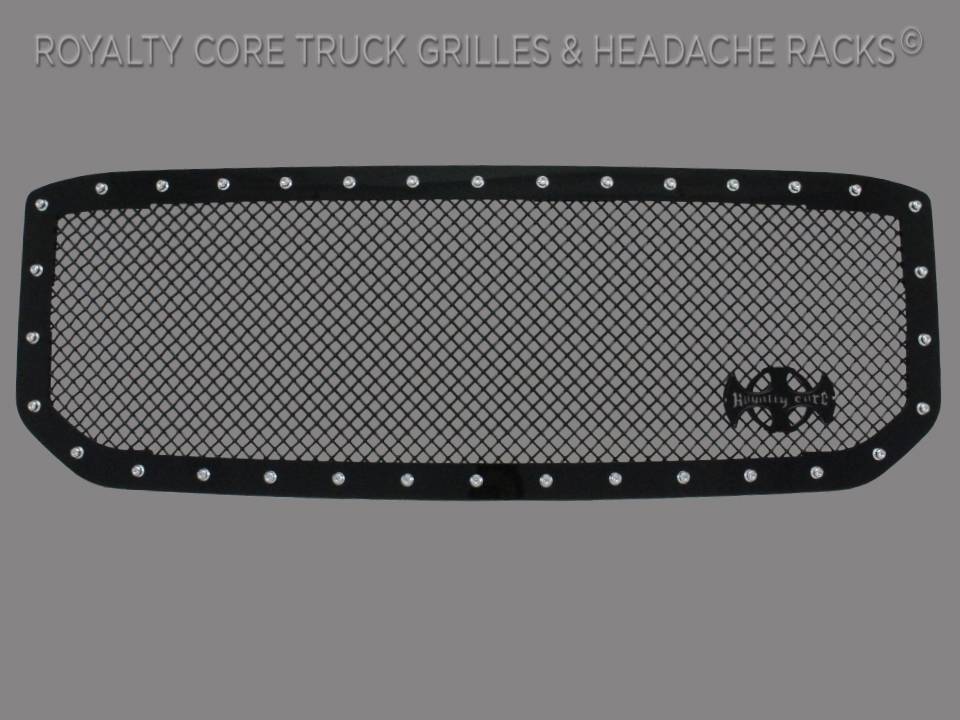 Royalty Core's proprietary corrosion resistant stainless technology creates the most durable grille on the planet. Absolutely every piece is 100% T304 stainless steel. It's engineered to exploit the cleanest installation possible for your specific truck model. This Royalty Core grille is customized to best match your truck with military grade strength you can count on such as a 12 gauge stainless steel construction, optimal mounting brackets, CNC precision machined brackets, frame, and logos, hand fabricated, all gloss surfaces are buffed to a deep smooth mirrored finish,triple chrome plated T304 stainless studs around frame with star flange design, stainless super woven mesh, and absolutely no plastic. Royalty Core offers the industry's largest customized line of grilles and logos available.