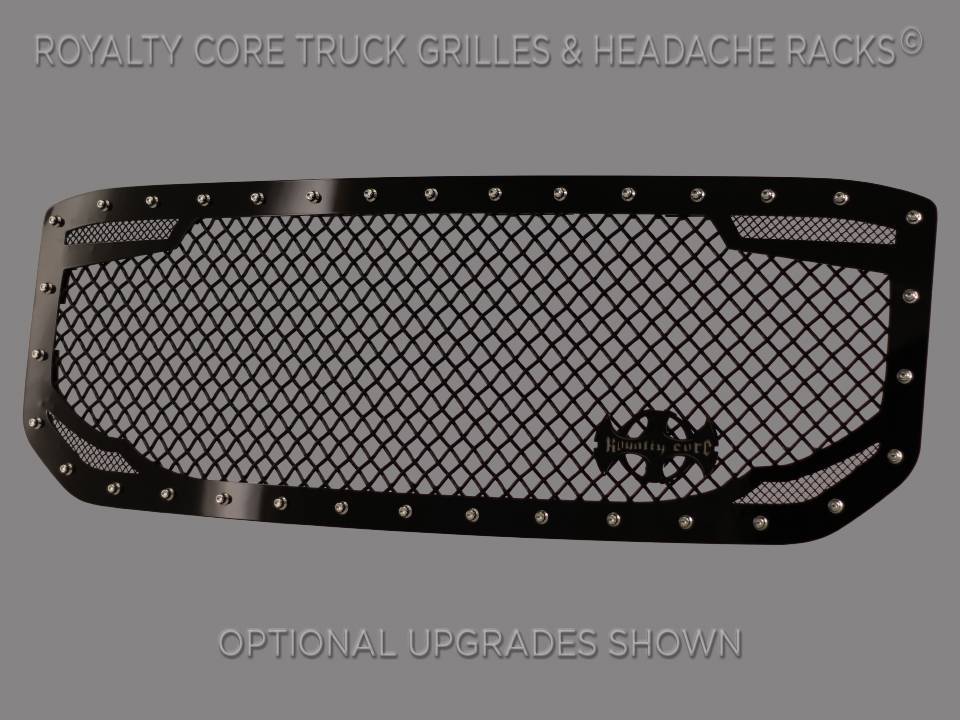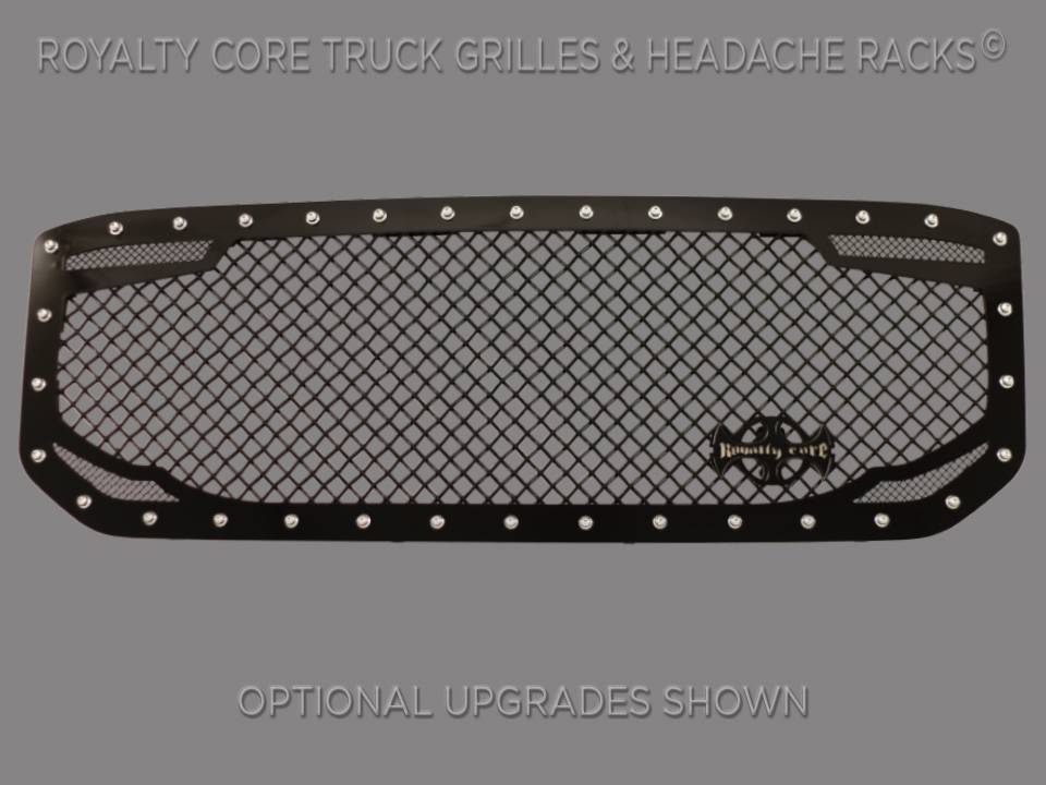 Royalty Core's proprietary corrosion resistant stainless technology creates the most durable grille on the planet. Absolutely every piece is 100% T304 stainless steel. It's engineered to exploit the cleanest installation possible for your specific truck model. This Royalty Core grille is customized to best match your truck with military grade strength you can count on such as a 12 gauge stainless steel construction, optimal mounting brackets, CNC precision machined brackets, frame, and logos, hand fabricated, all gloss surfaces are buffed to a deep smooth mirrored finish,triple chrome plated T304 stainless studs around frame with star flange design, stainless super woven mesh, and absolutely no plastic. Royalty Core offers the industry's largest customized line of grilles and logos available.