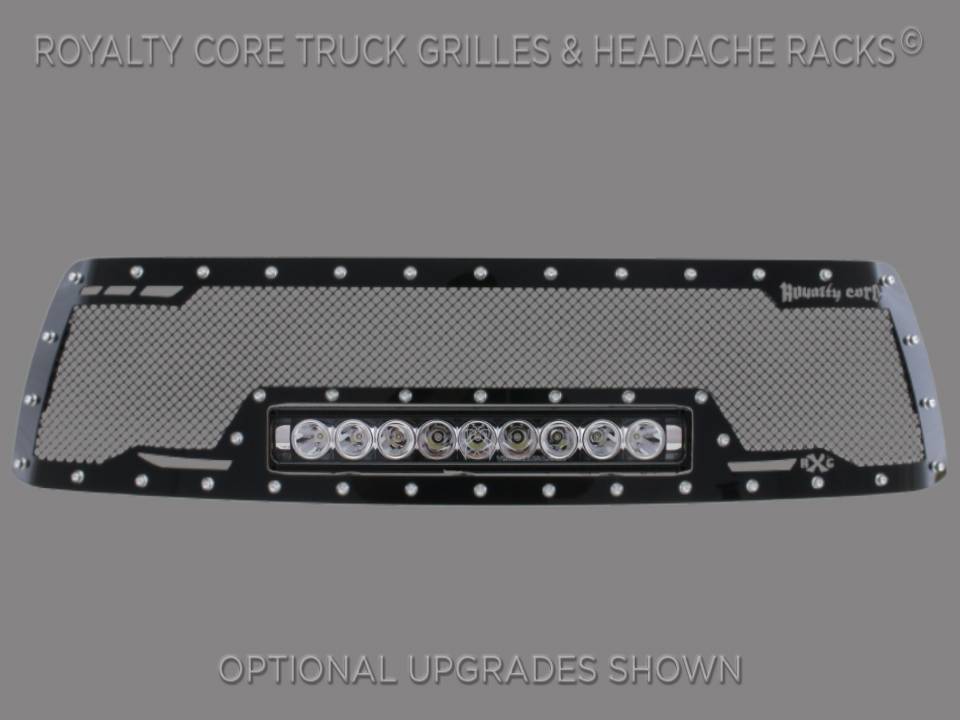 Royalty Core's proprietary corrosion resistant stainless technology creates the most durable grille on the planet. Absolutely every piece is 100% T304 stainless steel. It's engineered to exploit the cleanest installation possible for your specific truck model. This Royalty Core grille is customized to best match your truck with military grade strength you can count on such as a 12 gauge stainless steel construction, optimal mounting brackets, CNC precision machined brackets, frame, and logos, hand fabricated, all gloss surfaces are buffed to a deep smooth mirrored finish,triple chrome plated T304 stainless studs around frame with star flange design, stainless super woven mesh, and absolutely no plastic. Royalty Core offers the industry's largest customized line of grilles and logos available.
