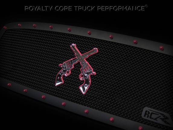Important Note: If you already have a Royalty Core grille please let us know which grille and mesh you have so we can provide you with a perfect logo fit. When you purchase your logo there is a comments box where you can give specific mounting information if needed. As an upgrade you can customize the size, colors, or have design or text added or removed. Please email or call for a quote if you want to customize this logo.