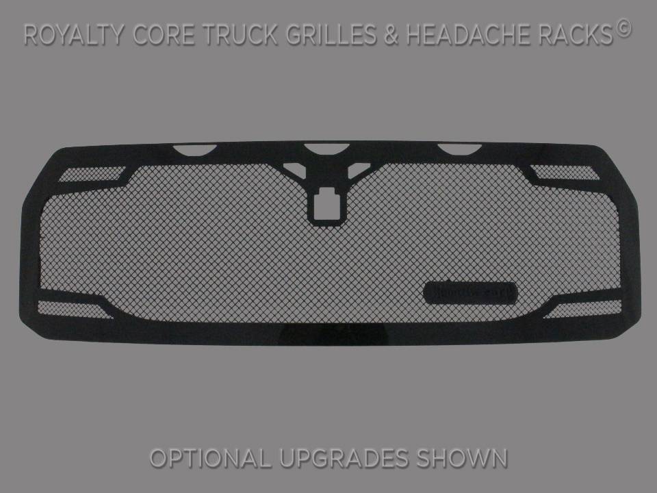 Royalty Core's proprietary corrosion resistant stainless technology creates the most durable grille on the planet. Absolutely every piece is 100% T304 stainless steel. It's engineered to exploit the cleanest installation possible for your specific truck model. This Royalty Core grille is customized to best match your truck with military grade strength you can count on such as a 12 gauge stainless steel construction, optimal mounting brackets, CNC precision machined brackets, frame, and logos, hand fabricated, all gloss surfaces are buffed to a deep smooth mirrored finish,triple chrome plated T304 stainless studs around frame with star flange design, stainless super woven mesh, and absolutely no plastic. Royalty Core offers the industry's largest customized line of grilles and logos available.