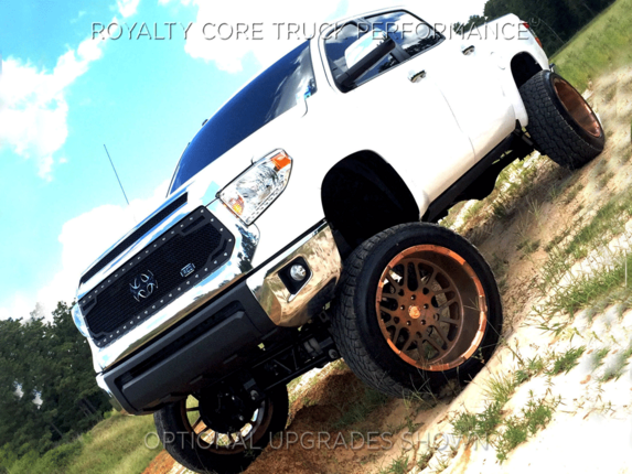 Royalty Core's proprietary corrosion resistant stainless technology creates the most durable grille on the planet. Absolutely every piece is 100% T304 stainless steel. It's engineered to exploit the cleanest installation possible for your specific truck model. This Royalty Core grille is customized to best match your truck with military grade strength you can count on such as a 12 gauge stainless steel construction, optimal mounting brackets, CNC precision machined brackets, frame, and logos, hand fabricated, all gloss surfaces are buffed to a deep smooth mirrored finish, triple chrome plated T304 stainless studs around frame with star flange design, stainless super woven mesh, and absolutely no plastic. Royalty Core offers the industry's largest customized line of grilles and logos available.