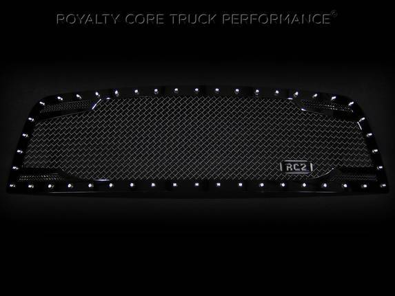 Royalty Core's proprietary corrosion resistant stainless technology creates the most durable grille on the planet. Absolutely every piece is 100% T304 stainless steel. It's engineered to exploit the cleanest installation possible for your specific truck model. This Royalty Core grille is customized to best match your truck with military grade strength you can count on such as a 12 gauge stainless steel construction, optimal mounting brackets, CNC precision machined brackets, frame, and logos, hand fabricated, all gloss surfaces are buffed to a deep smooth mirrored finish,triple chrome plated T304 stainless studs around frame with star flange design, stainless super woven mesh, and absolutely no plastic. Royalty Core offers the industry's largest customized line of grilles and logos available.