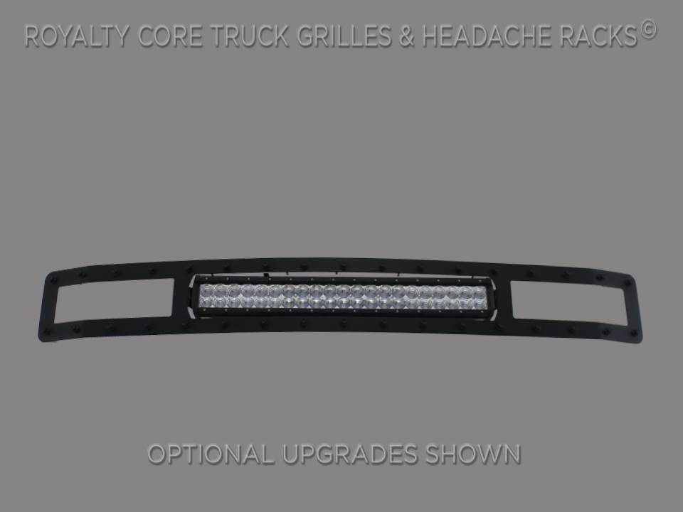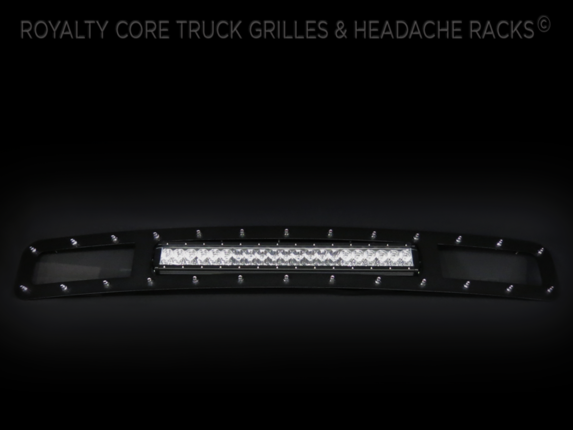 This grille includes an insanely powerful mounted and balanced 23 inch LED light bar. Including a weatherproof Deutsch connector with plug-and-play, polycarbonate lens, and isolated rubber mounts for vibration control. An updated multi-volt electronics increase output with a seamless beam pattern featuring a 50,000 hour lifespan. Being manufactured from extruded aluminum, this LED is tough enough for all conditions. The front has the ultimate protection of the unbreakable polycarbonate lens.Each grille has been rigorously tested by Royalty Core engineers