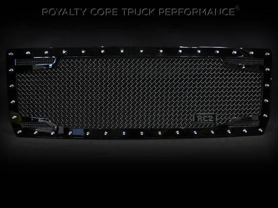 Royalty Core's proprietary corrosion resistant stainless technology creates the most durable grille on the planet. Absolutely every piece is 100% T304 stainless steel. It's engineered to exploit the cleanest installation possible for your specific truck model. This Royalty Core grille is customized to best match your truck with military grade strength you can count on such as a 12 gauge stainless steel construction, optimal mounting brackets, CNC precision machined brackets, frame, and logos, hand fabricated, all gloss surfaces are buffed to a deep smooth mirrored finish,triple chrome plated T304 stainless studs around frame with star flange design, stainless super woven mesh, and absolutely no plastic. Royalty Core offers the industry's largest customized line of grilles and logos available.