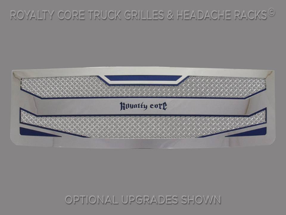 Royalty Core's proprietary corrosion resistant stainless technology creates the most durable grille on the planet. Absolutely every piece is 100% T304 stainless steel. It's engineered to exploit the cleanest installation possible for your specific truck model. This Royalty Core grille is customized to best match your truck with military grade strength you can count on such as a 12 gauge stainless steel construction, optimal mounting brackets, CNC precision machined brackets, frame, and logos, hand fabricated, all gloss surfaces are buffed to a deep smooth mirrored finish,triple chrome plated T304 stainless studs around frame with star flange design, stainless super woven mesh, and absolutely no plastic. Royalty Core offers the industry's largest customized line of grilles and logos available.