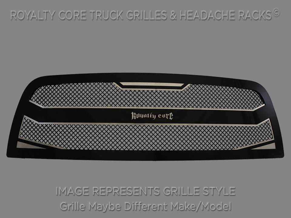 Royalty Core's proprietary corrosion resistant stainless technology creates the most durable grille on the planet. Absolutely every piece is 100% T304 stainless steel. It's engineered to exploit the cleanest installation possible for your specific truck model. This Royalty Core grille is customized to best match your truck with military grade strength you can count on such as a 12 gauge stainless steel construction, optimal mounting brackets, CNC precision machined brackets, frame, and logos, hand fabricated, all gloss surfaces are buffed to a deep smooth mirrored finish,triple chrome plated T304 stainless studs around frame with star flange design, stainless super woven mesh, and absolutely no plastic. Royalty Core offers the industry's largest customized line of grilles and logos available.