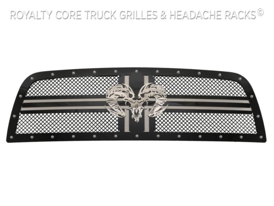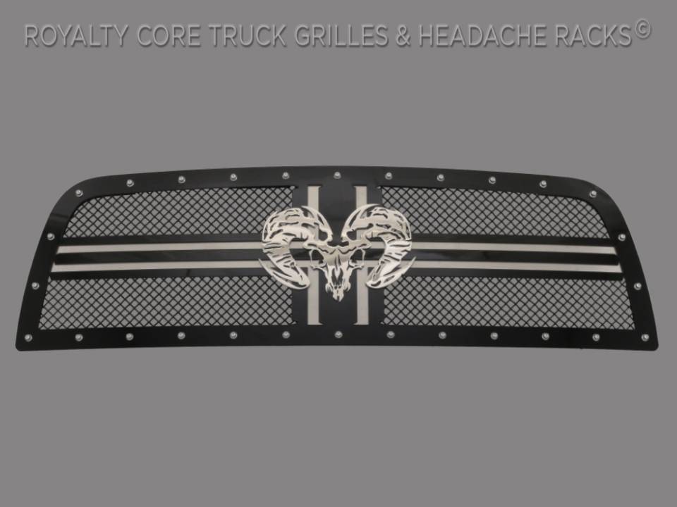 Product Features: Royalty Core developed their RCR2 Classic Ram Style with a Classic Ram Cross Bar look, Under-layer For added dynamic design, and raised center Ram Skull. This Grille also Has Royalty Core's race proven diamond mesh for accelerated airflow and appearance. Royalty Core's iconic stainless triple chrome studs, T304 construction, Royalty Core's proprietary corrosion resistant stainless technology creates the most durable grille on the planet. Each grille has been rigorously tested by Royalty Core engineers to maximize protection, appearance, and performance on and off-road. Lab tried with rapid salt and chemical spray tests proving the most resilient grille on the market against the harshest conditions. Simple direct bolt on Royalty Core grilles are engineered to exploit the cleanest installation possible for your specific truck model. Royalty Core's proprietary corrosion resistant stainless technology creates the most durable grille on the planet. Absolutely every piece is 100% T304 stainless steel. It's engineered to exploit the cleanest installation possible for your specific truck model. This Royalty Core grille is customized to best match your truck with military grade strength you can count on such as a 12 gauge stainless steel construction, optimal mounting brackets, CNC precision machined brackets, frame, and logos, hand fabricated, all gloss surfaces are buffed to a deep smooth mirrored finish, triple chrome plated T304 stainless studs around frame with star flange design, stainless super woven mesh, and absolutely no plastic. Royalty Core offers the industry's largest customized line of grilles and logos available. World Class Quality by Royalty Core Built by Hand in the USA-No Comparison Corrosion Resistant Stainless Steel Technology Engineered into the Complete Construction Royalty Core Offers Custom Designed Logos and Grille Elements for the Ultimate Touch Superior Mounting Brackets use Factory Mounting Points for the Cleanest Installation Available Race Proven Diamond Mesh Accelerates Airflow for more Engine Power & Cooler Temperatures Royalty Core's Iconic T304 Stainless Steel Triple Chrome Studs have Secondary Design for Extra Dimension Designed to Better Protect your Radiator, Front End, & Engine Components from Impacts Includes Installation Hardware, Easy to Follow Instructions, & Online Video Support Lifetime Warranty Advantage-Royalty Core Guaranteed