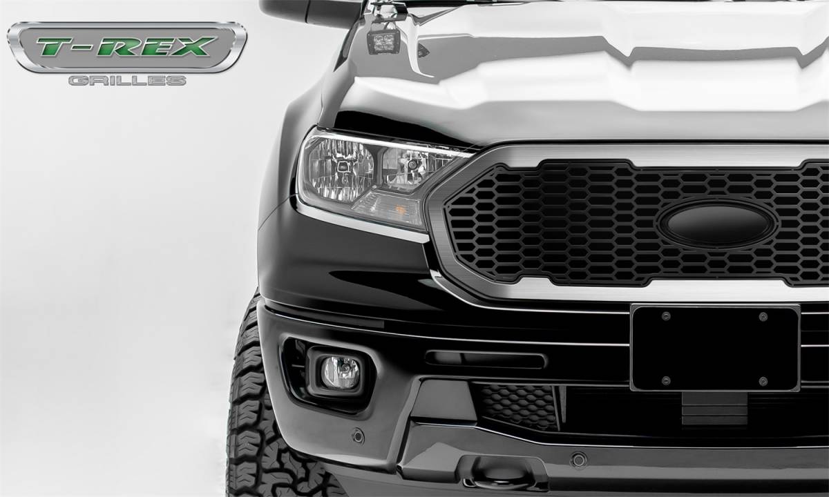 T-Rex Grilles 6315823 Laser X Series Grille Black - Mild Steel - 1 Pc - Replacement w/Brushed Trim - Must Reuse Factory Logo