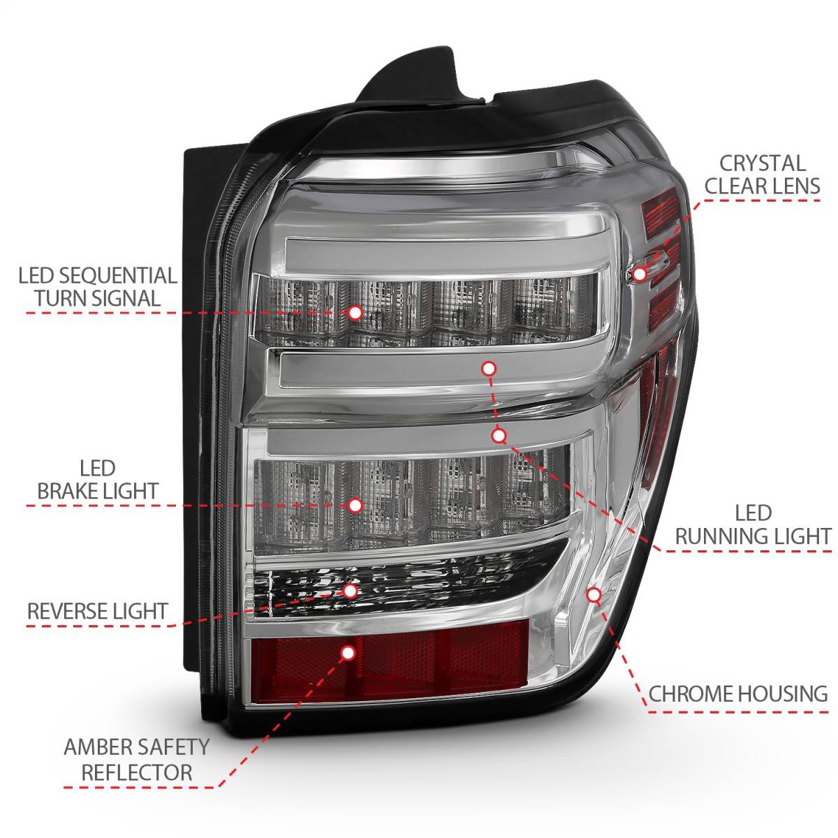 Anzo USA 311313 Tail Light Assembly LED - Clear Lens - Chrome Housing - Red Light Bar - w/Sequential - Pair