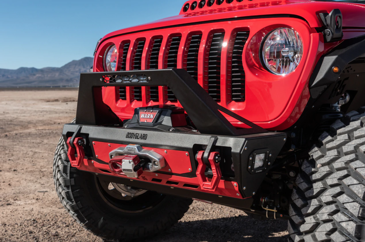 Bodyguards Jeep RX Series bumper line offers a fully customized look with bolt-on components. Features include: winch mount, LED light options, recovery shackles, and optional powder coated finishes. Bodyguard is now in charge of both the truck and jeep market with their lightening focus on precision design, construction, finish and details. Order this Jeep bumper today with confidence that you're getting the best product on the market.