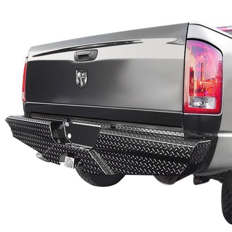 Diamond rear bumper provides superior protection to the back of your vehicle. It allows access to all factory trailer plugs and factory installed tow hitch assembly. With attractive form and function, this diamond back bumper cosmetically covers all rear body parts, while its convenient step design allows for easy access to your truck bed.
