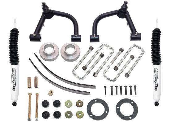 Raise your Tacoma 3 inches, enough to clear 32 inch tires with this suspension lift kit from Tuff Country EZ-Ride Suspension. Using a combination of upper control arms and upper strut spacers to lift your truck front end, the proper geometry is maintained to allow for easy front end alignment which gives your Tacoma better driving and handling charactistics. The rear end is lifted using add-a-leafs and extended ubolts. Includes rear Tuff Country SX8000 nitro gas shocks.