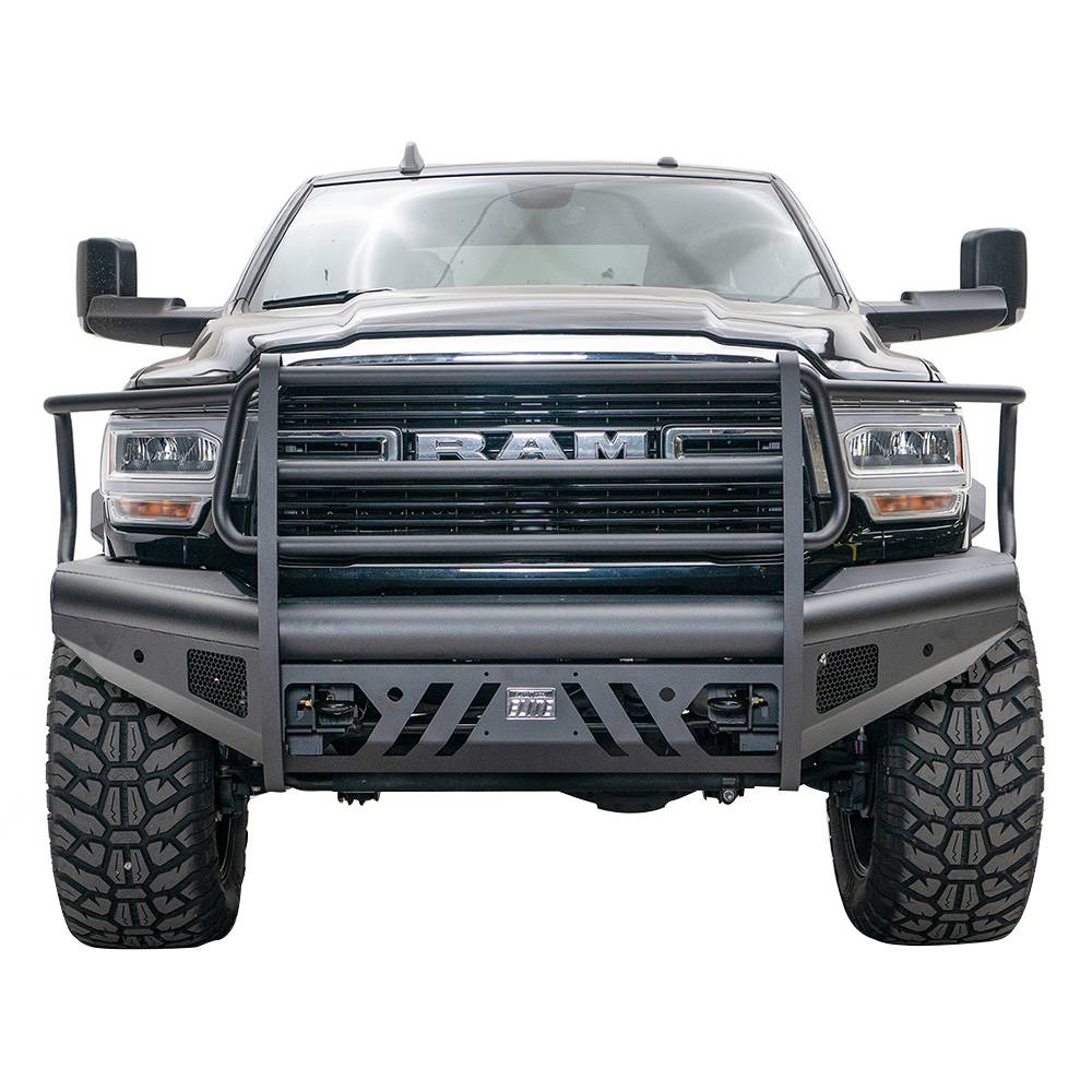 Fab Fours DR19-Q4460-1 Black Steel Elite Front Bumper with Full Grill Guard for Dodge Ram 2500/3500 2019-2021