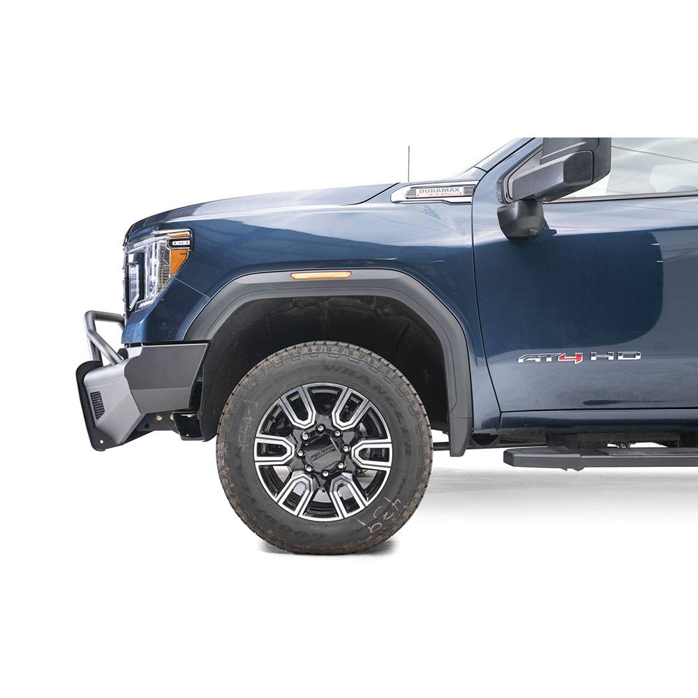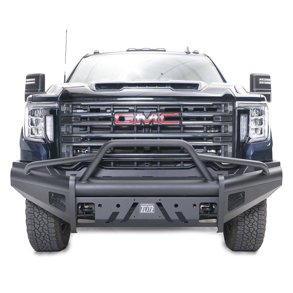 For the GMC HD we took the ranch bumper design and combined it with the smooth plate look from our premium line to create Black Steel Elite. No grill mesh and premium powder coat give the Elite bumpers a unique look. Like all Fab Fours products we matched every bumper to the body lines of each model truck. The Elite series is a whole new look with the same Fab Fours quality, manufactured in South Carolina, USA.
