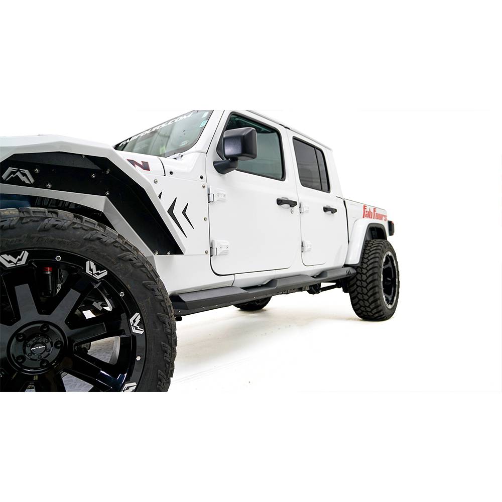 The Fab Fours JL tube jeep gladiator rock sliders offer superior strength and unparalleled protection. As part of the all new Fab Fours armor system you can trust that your jeep JL will take the abuse from the harshest off road conditions.