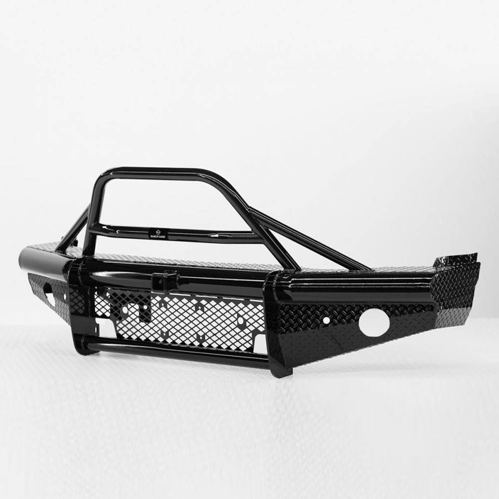 The legend series front bumper is the strongest product represented in vehicle protection built for 3/4 ton and bigger trucks. Identified as Ranch Hand workhorse steel bumper, its constructed from 4" schedule 40 pipe and diamond-plate steel. The built in grille guard or bullnose provides maximum protection to the headlights and all around unyielding front end protection.