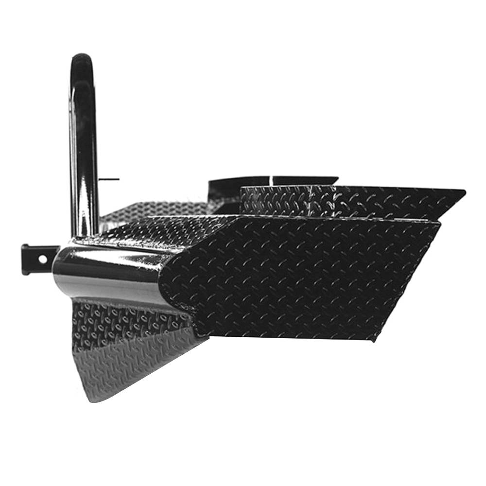 The legend series front bumper is the strongest product represented in vehicle protection built for 3/4 ton and bigger truck. Identified as Ranch Hand workhorse steel bumper its constructed from 4" schedule 40 pipe and diamond-plate steel. The built in grille guard or bullnose provides maximum protection to the headlights and all around unyielding front end protection.