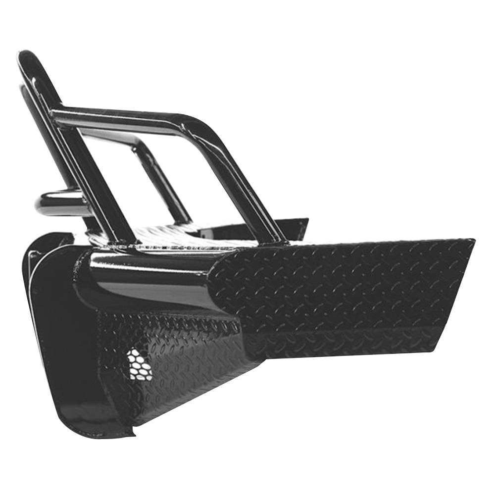 The legend series front bumper is the strongest product represented in vehicle protection built for 3/4 ton and bigger trucks. Identified as ranch hands workhorse steel bumper, its constructed from 4" schedule 40 pipe and diamond-plate steel. The built in grille guard or bullnose provides maximum protection to the headlights and all around unyielding front end protection.