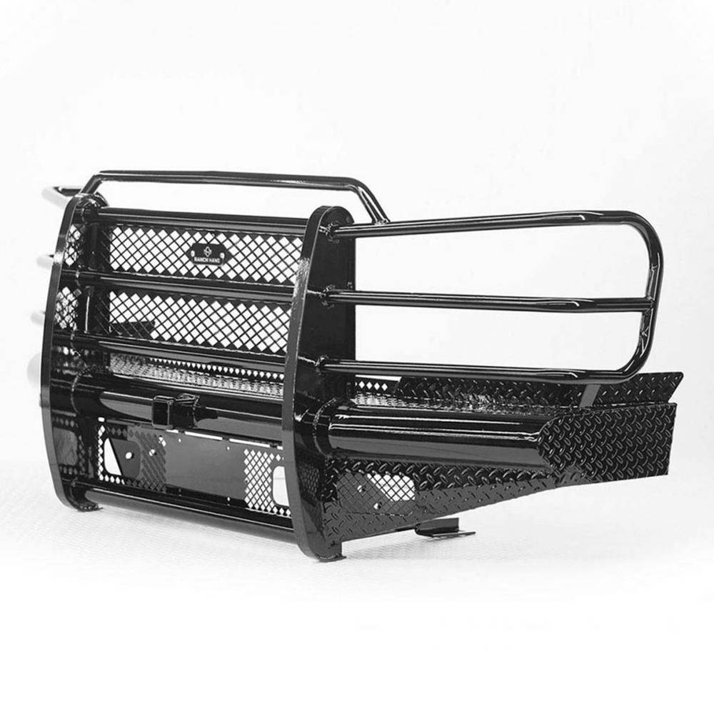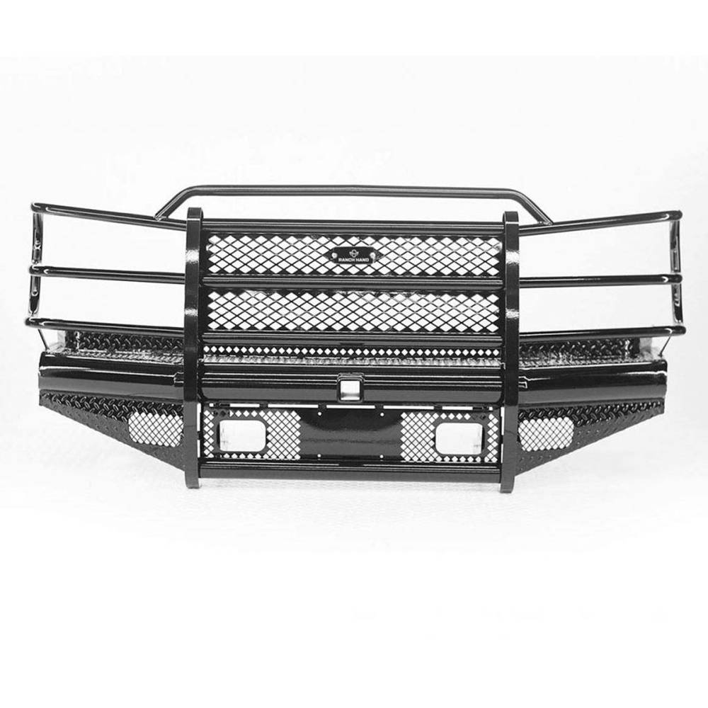 The legend series front bumper is the strongest product represented in vehicle protection built for 3/4 ton and bigger trucks. Identified as Ranch Hand workhorse steel bumper, its constructed from 4" schedule 40 pipe and diamond-plate steel. The built in grille guard provides maximum protection to the headlights and all around unyielding front end protection.
