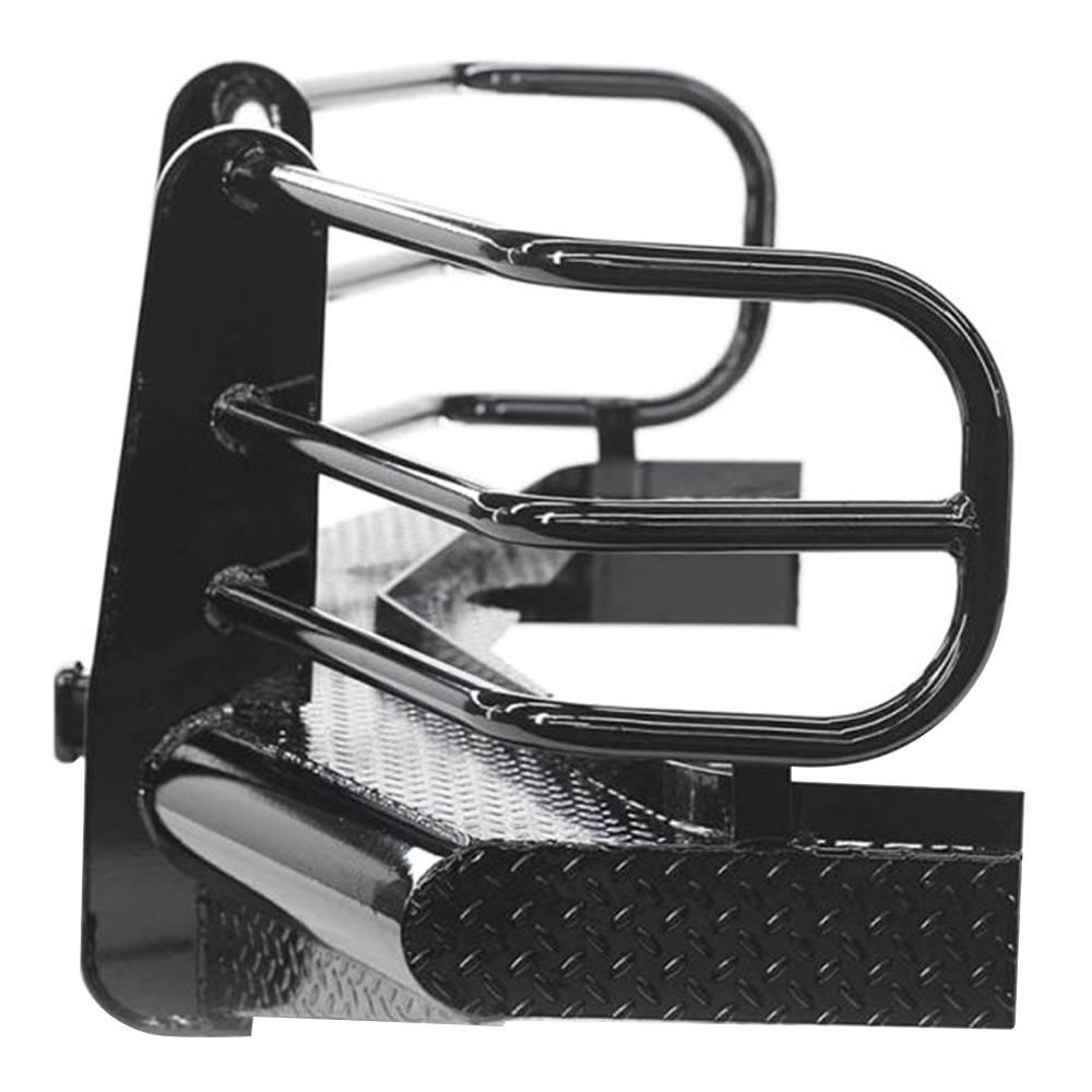 The legend series front bumper is the strongest product represented in vehicle protection built for 1/2 ton+ and bigger trucks. Identified as Ranch Hand workhorse steel bumper, its constructed from 4" schedule 40 pipe and diamond-plate steel. The built in grille guard provides maximum protection to the headlights and all around unyielding front end protection.