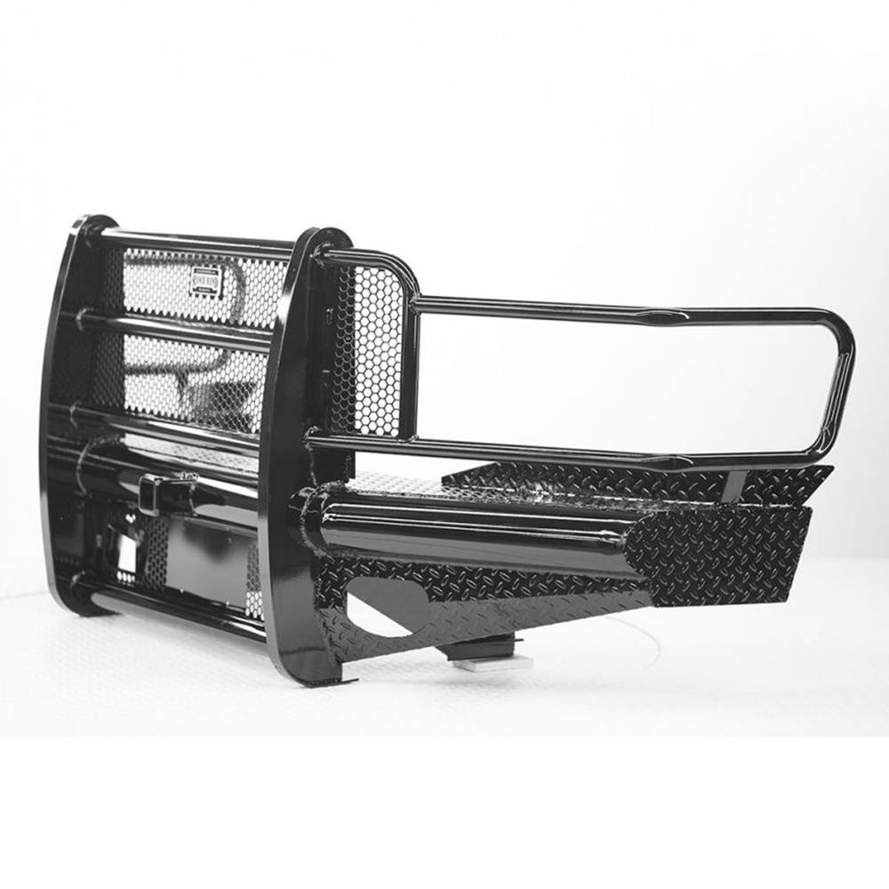 The legend series front bumper is the strongest product represented in vehicle protection built for 3/4 ton and bigger trucks. Identified as Ranch Hand workhorse steel bumper, its constructed from 4" schedule 40 pipe and diamond-plate steel. The built in grille guard provides maximum protection to the headlights and all around unyielding front end protection.