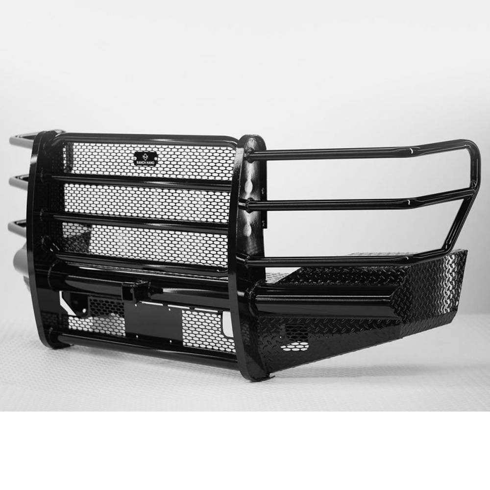 The legend series front bumper is the strongest product represented in vehicle protection built for 3/4 ton and bigger trucks. Identified as Ranch Hands workhorse steel bumper, its constructed from 4" schedule 40 pipe and diamond-plate steel. The built in grille guard provides maximum protection to the headlights and all around unyielding front end protection.