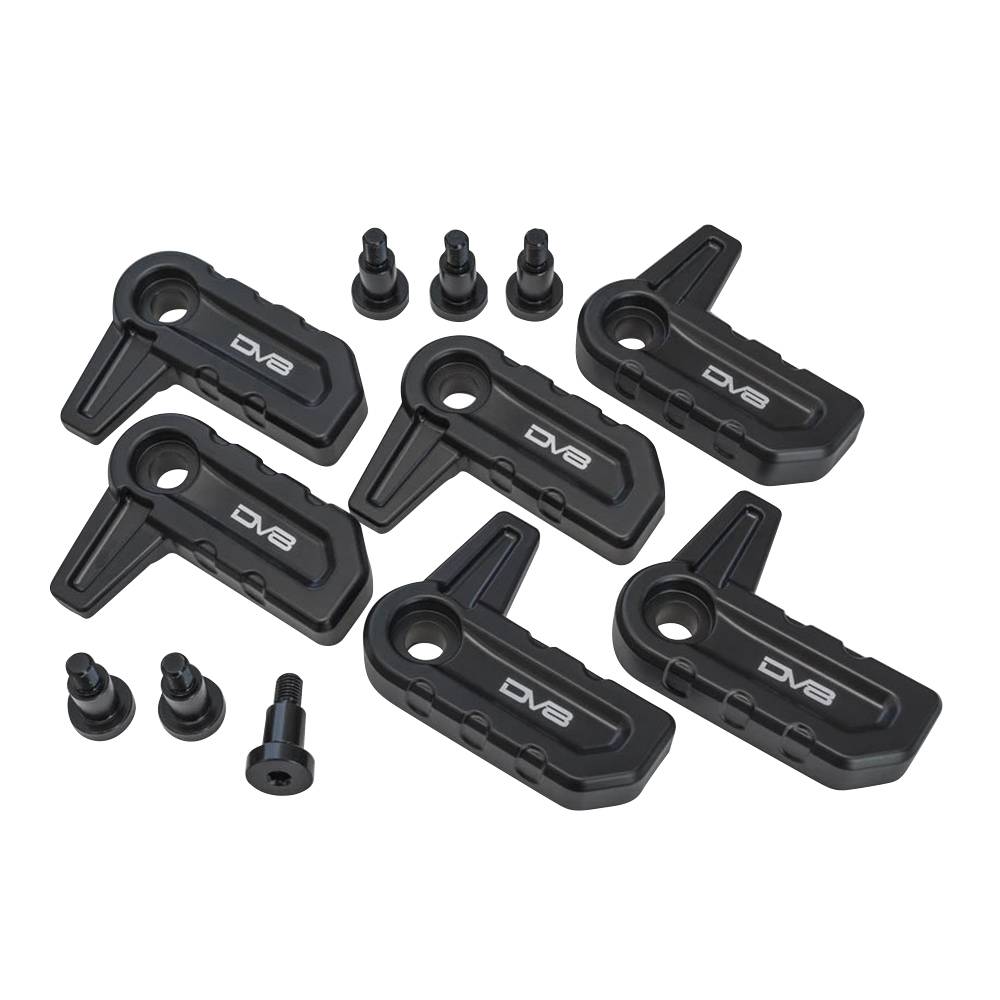 The kit is designed to replace the brittle plastic OEM hardtop closure handles with strong billet aluminum handles. These handles are precision made by a CNC machine and the anodized for a clean black finish. The kit comes with all hardware necessary to mount your new handles and each kit comes with 6 handles.