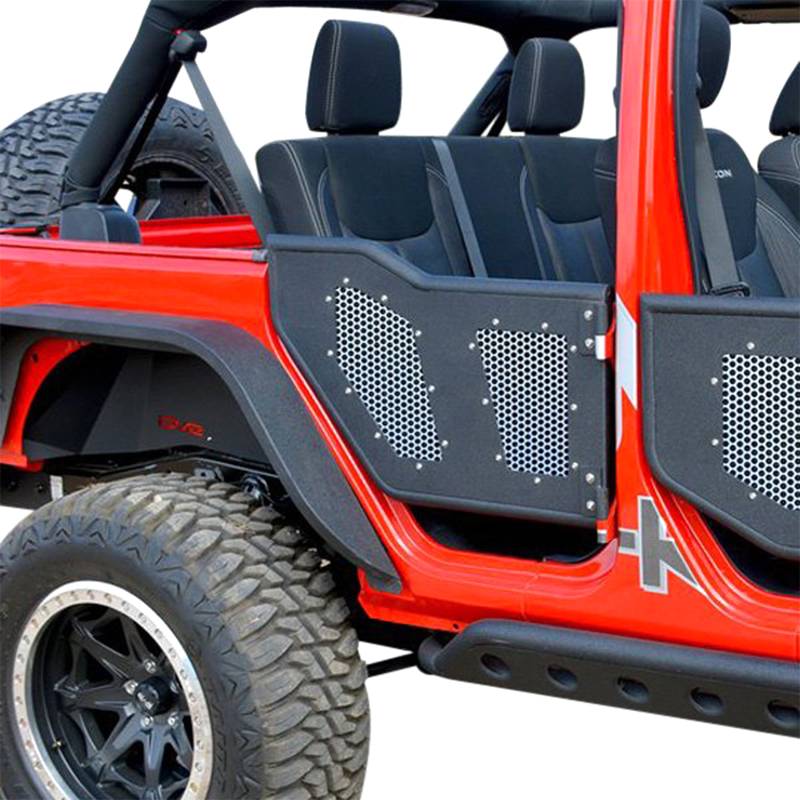 These mesh screens were designed to replace the steel panels that come standard in the DV8 JK rock doors. Whether youre looking to shed some weight, get some extra airflow or just change up the look of your rock doors these are the perfect solution.