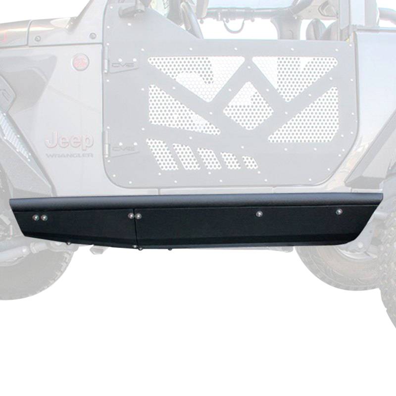 The Boatside Rock sliders was designed for ultimate protection for those who use their sliders regularly while traversing trails. These sliders bolt directly to the frame and utilize the frame to body mounts along with the frame rails themselves to add rigidity and reduce deflection to near zero. They can be run as a regular slider or can be used with the included plates to create a "mini boatside" effect. These plates help the Jeep to slide off of obstacles rather than getting hung up. Install is simple and 100% bolt on so the sliders can be removed for touch up or recoating