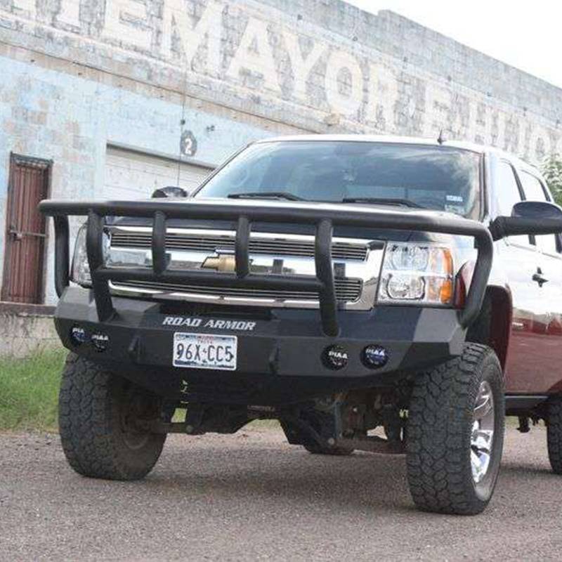 Road Armor 37702B Stealth Winch Front Bumper with Titan II Guard and Round Light Holes for Chevy Silverado 1500 2008-2013