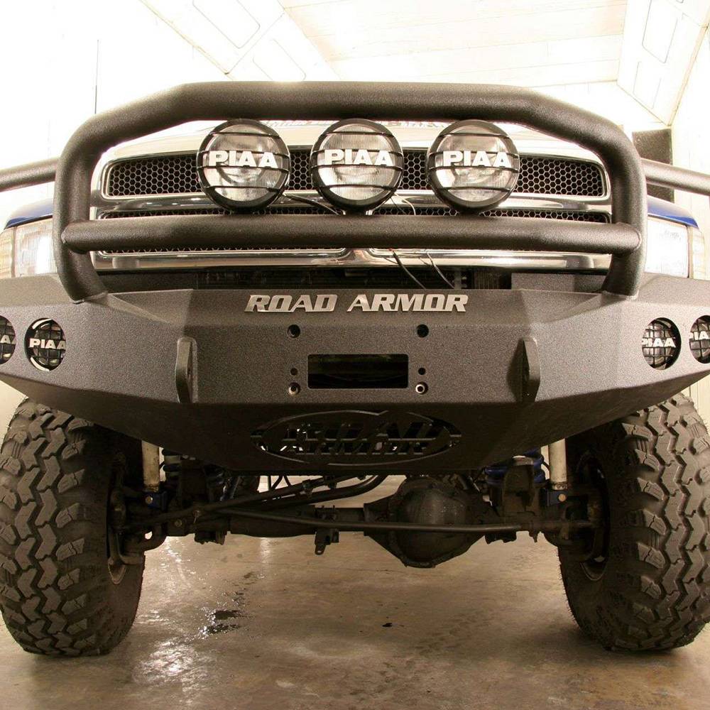Road Armor 47015B Stealth Winch Front Bumper with Lonestar Guard and Round Light Holes for Dodge Ram 1500/2500/3500 1997-2002