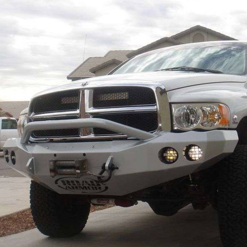 Road Armor 44044B Stealth Winch Front Bumper with Pre-Runner Guard and Round Light Holes for Dodge Ram 2500/3500 2003-2005