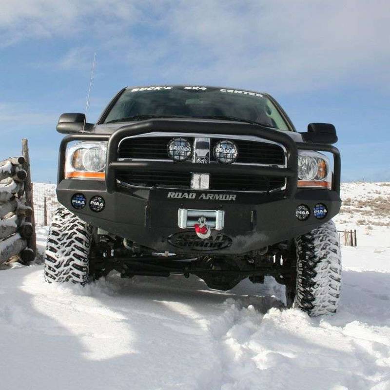 Road Armor 44065B Stealth Winch Front Bumper with Lonestar Guard and Round Light Holes for Dodge Ram 2500/3500/4500/5500 2006-2009