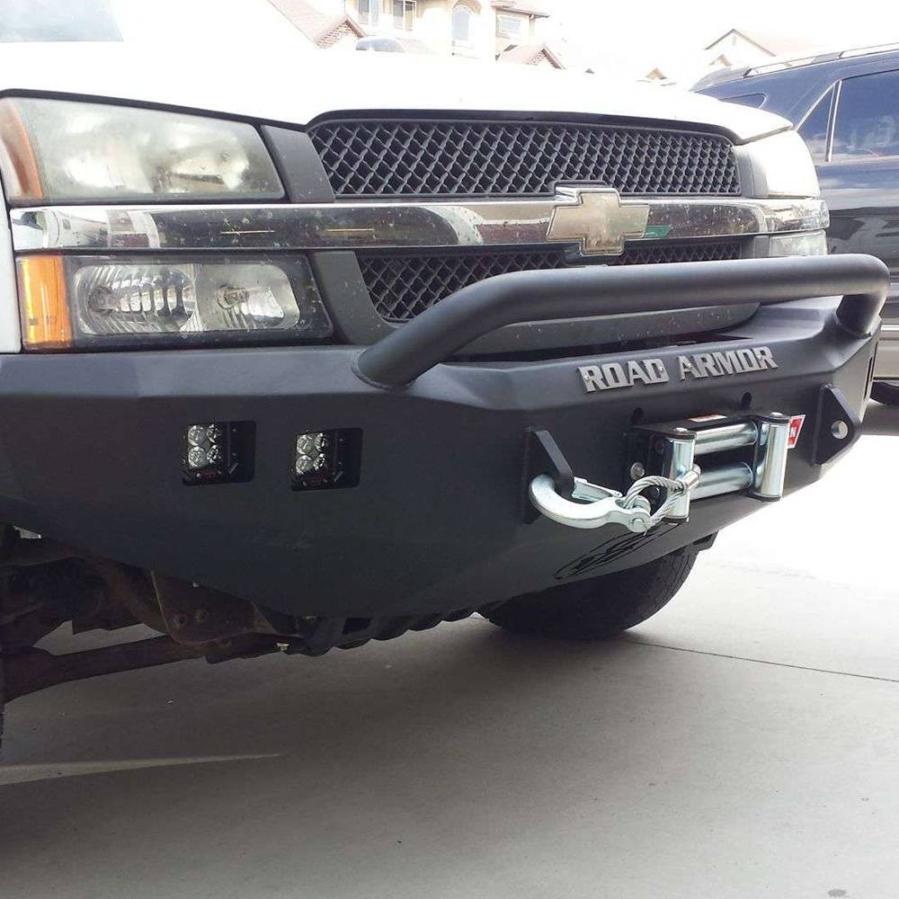 Road Armor 370R4B Stealth Winch Front Bumper with Pre-Runner Guard and Square Light Holes for Chevy Silverado 2500 HD/3500 HD/2500/3500 2003-2007