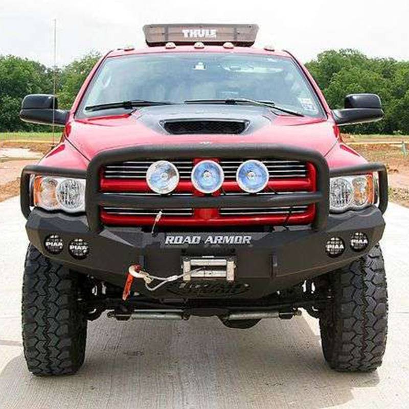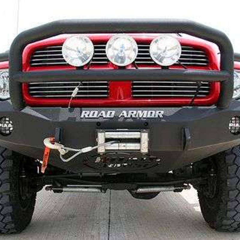 Road Armor 44035B Stealth Winch Front Bumper with Lonestar Guard and Round Light Holes for Dodge Ram 1500 2002-2005