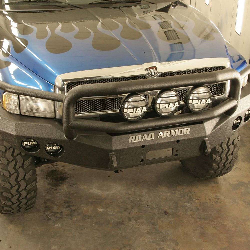 Road Armor 47005B Stealth Winch Front Bumper with Lonestar Guard and Round Light Holes for Dodge Ram 1500/2500/3500 1994-1996