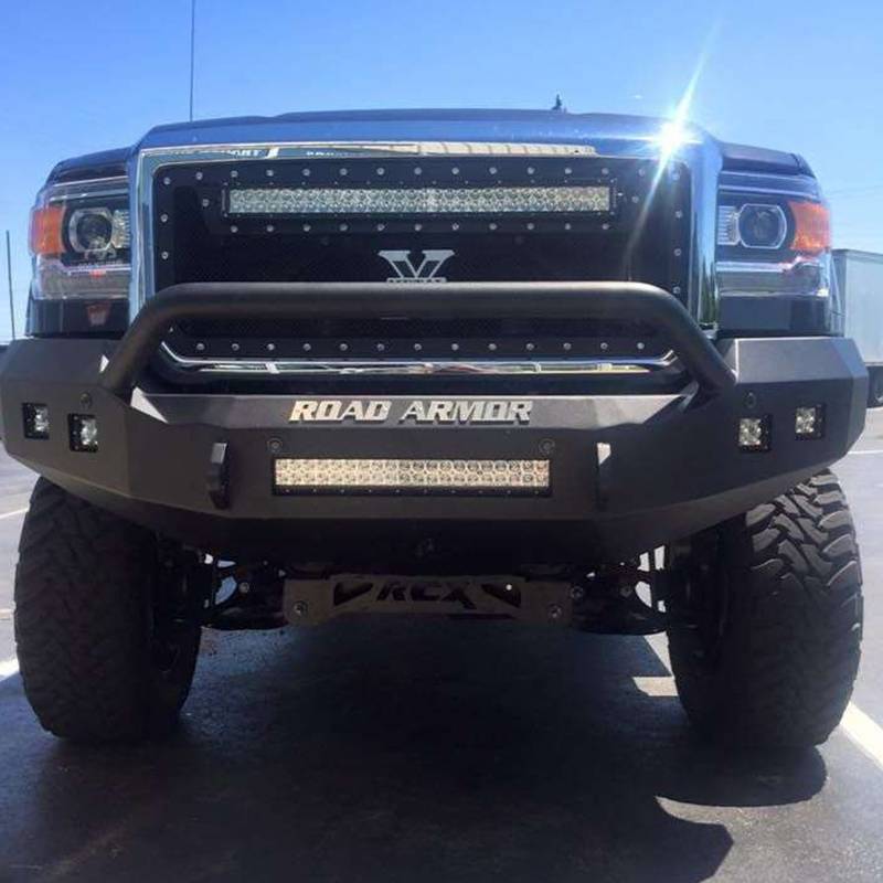 Road Armor 214R4B-NW Stealth Non-Winch Front Bumper with Pre-Runner Guard and Square Light Holes for GMC Sierra 1500 2014-2015