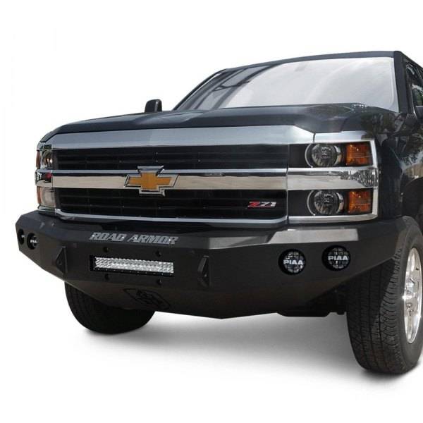 Road Armor 38200B-NW Stealth Non-Winch Front Bumper with Round Light Holes and Square Light Holes for Chevy Silverado 2500 HD/3500 HD 2011-2014