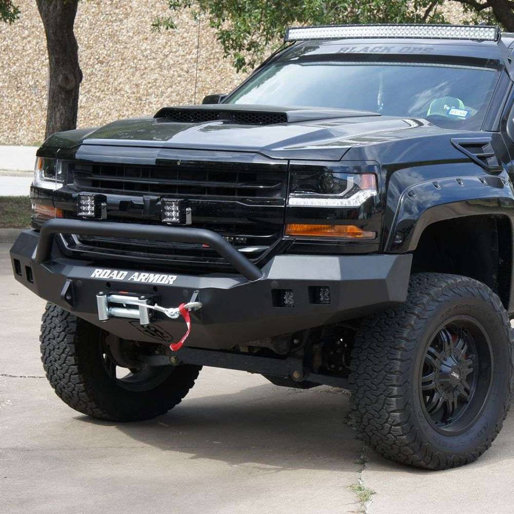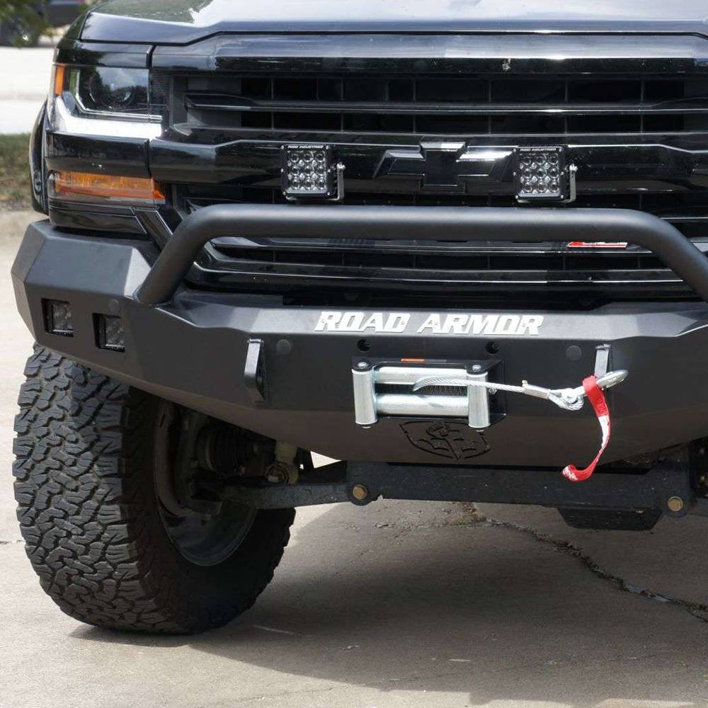 Road Armor 316R4B Stealth Winch Front Bumper with Pre-Runner Guard and Square Light Holes for Chevy Silverado 1500 2016-2018