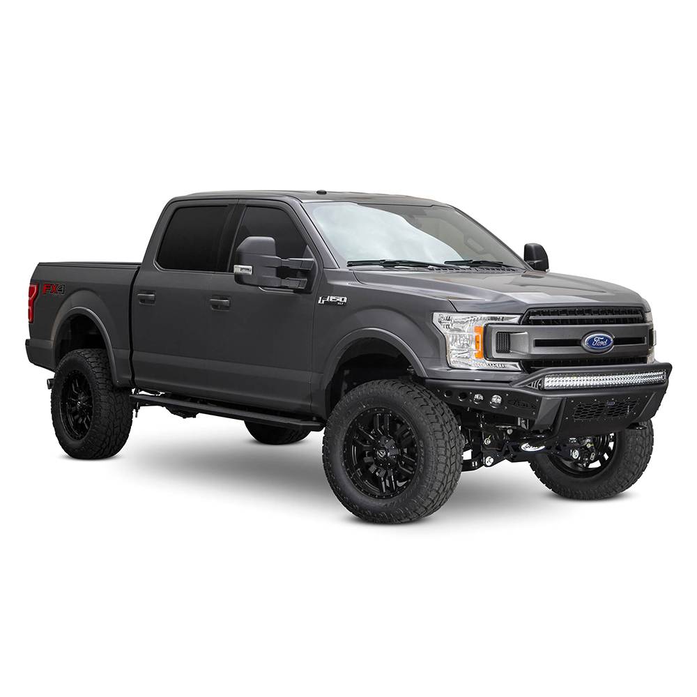 The ADD stealth R ford F150 front bumper features a formed tube made from .120 wall steel that allows for a tight fitment to the front of the truck. Universal light mount system on the top of the bumper allows for up to 10 cube lights or a 40" radius LED bar to be mounted. Mix and match any brand and size lights with the universal light kit to create the perfect lighting combination for your needs. Additional lighting options are available behind the side accent panels accepting two cube lights on each side. A vented skid plate allows the stealth R bumper to maintain airflow to your intercooler with added ground clearance and a better approach angle the stealth R bumper is one of the most aggressive looking off-road bumpers you can buy for your ford F150. Comes packaged with universal light mount kit to install any brand and size lighting combination.