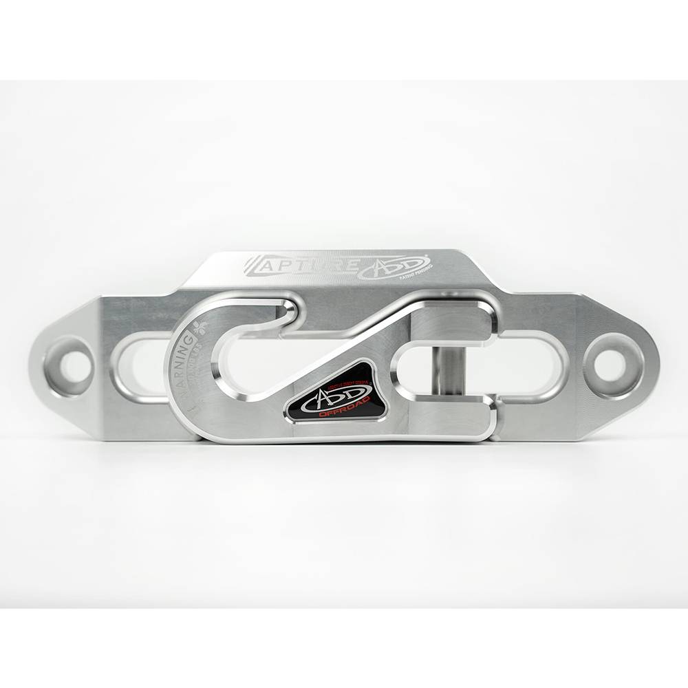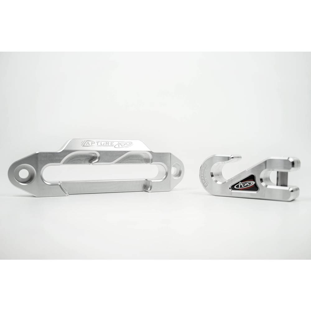 The capture fairlead system holds your hook in place when not in use, giving you the ultimate form and function. Hook capture system keeps your hook from dangling outside your vehicle making a clean and low profile front end. Built from 1 5/16" thick CNC machined high quality aerospace aluminium the capture fairlead is rated for up to 20,000 lb to help with all your winching needs. Available in raw aluminium or a military grade hard anodized black finish to withstand everyday use. Fits nearly any aftermarket winch front bumper. For synthetic winch rope only.