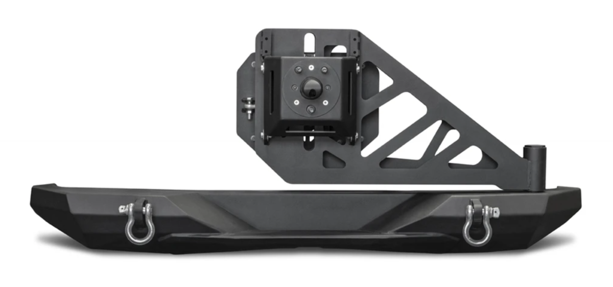 The DV8 Offroad RBJL-08 was designed for the hardcore offroader who needs to know that their spare isn’t going anywhere. This carrier provides unparalleled rigidity and makes the mounting rock solid. It connects to the tailgate of the Jeep and opens just like factory, using the highest quality heim joints to ensure tight rattle free operation. Not only does the tire carrier operate well but the bumper also provides high clearance and unparalleled protection.