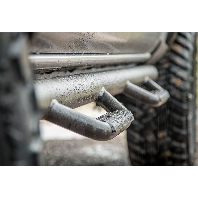 Rough Country new wheel to wheel nerf steps provide unrelenting style and easier access to your truck. These steps extend from one wheel well opening to the next, offering a clean install that lends to the look of your lifted truck. These steps can be installed on any vehicle, with or without a body lift. Innovative design actually hides any exposed frame you see under the truck, offering extra protection for your rocker panels. Rough Country nerf steps are made out of ultra-durable .084 wall corrosion resistant tubing with a zinc base coat and black finish for a sharp look that ready to withstand the elements. Rough Country steps include a lifetime replacement warranty.