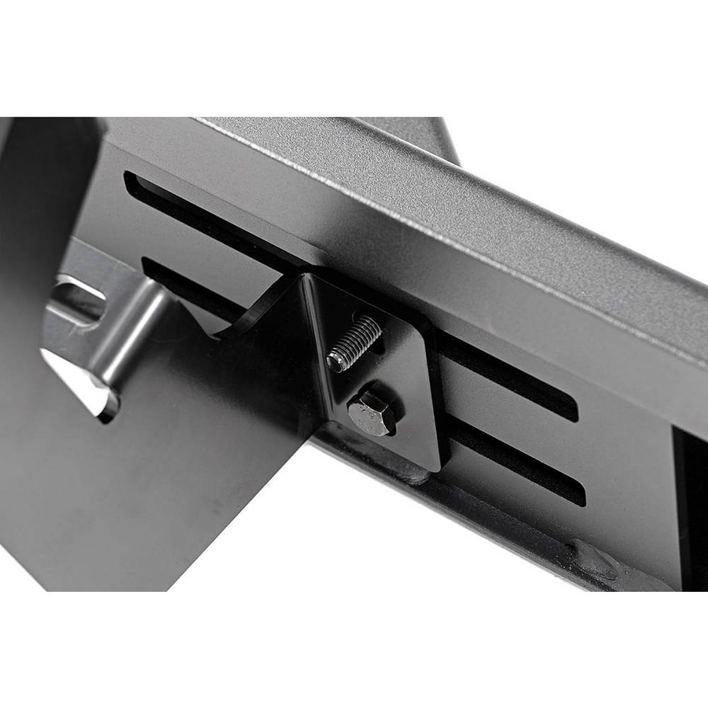 Gain incredible style and easier access to your truck with Rough Country DS2 drop steps. These stylish cab length steps offer a unique look for your vehicle, with two integrated drop steps to help you easily climb into your cab. Each integrated step is fabricated for strength and durability, and features a stamped tread and "RC" logo for a one-of-a-kind look and feel. These steel steps offer unrelenting reliability, powdercoated black to resist corrosion for a long life of great looks. Each step features a set of mounting brackets with a half-inch of adjustability to allow you to mount them closer or further from the body for the look and accessibility you prefer. Rough Country steps include a lifetime replacement warranty.