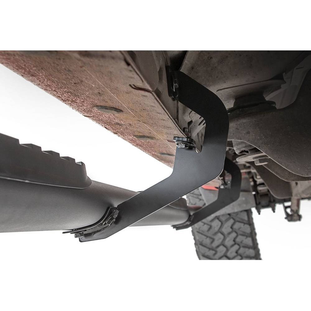 Gain easier access to your cab with the classic, OEM look of Rough Country oval nerf step bars. These durable, aluminum side steps feature a comfortable, 4.5" wide stepping area built into a large, tubular nerf rail that mimics the look of the popular OEM oval step design. Each nerf board features a long-lasting black powder coat and durable aluminum construction that can support up to 500 lb. Each step offers a 30-degree angled end design looks great on any vehicle. A secure, 4.5" wide stepping area features a non-slip pad to ensure a confident footing each and every time.
